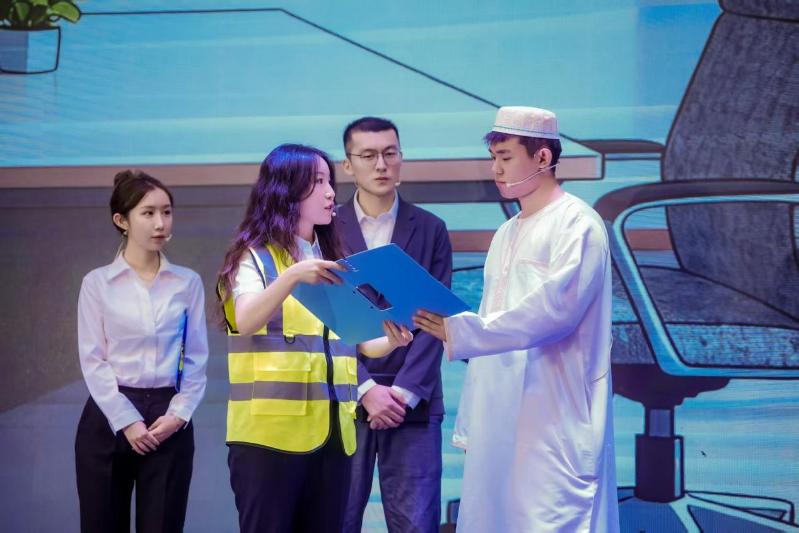西北公司參賽選手精心選題、團(tuán)結(jié)協(xié)作,編排了情景劇《Rail of Friendship-友誼之軌》,情景劇以集團(tuán)公司出口供應(yīng)雅萬(wàn)高鐵鋼軌為背景,講述了海外工程項(xiàng)目中“物資人”克服技術(shù)困難、文化差異,最終完成雅萬(wàn)高鐵鋼軌物資供應(yīng)并與當(dāng)?shù)厝嗣窠⑸詈裼颜x的感人故事。西北公司團(tuán)隊(duì)通過(guò)前期認(rèn)真準(zhǔn)備、刻苦排練,在決賽中呈現(xiàn)了一場(chǎng)形式新穎、配合默契、幽默詼諧的精彩演出,獲得了現(xiàn)場(chǎng)評(píng)委和觀眾的一致好評(píng),榮獲“團(tuán)體賽三等獎(jiǎng)”。
